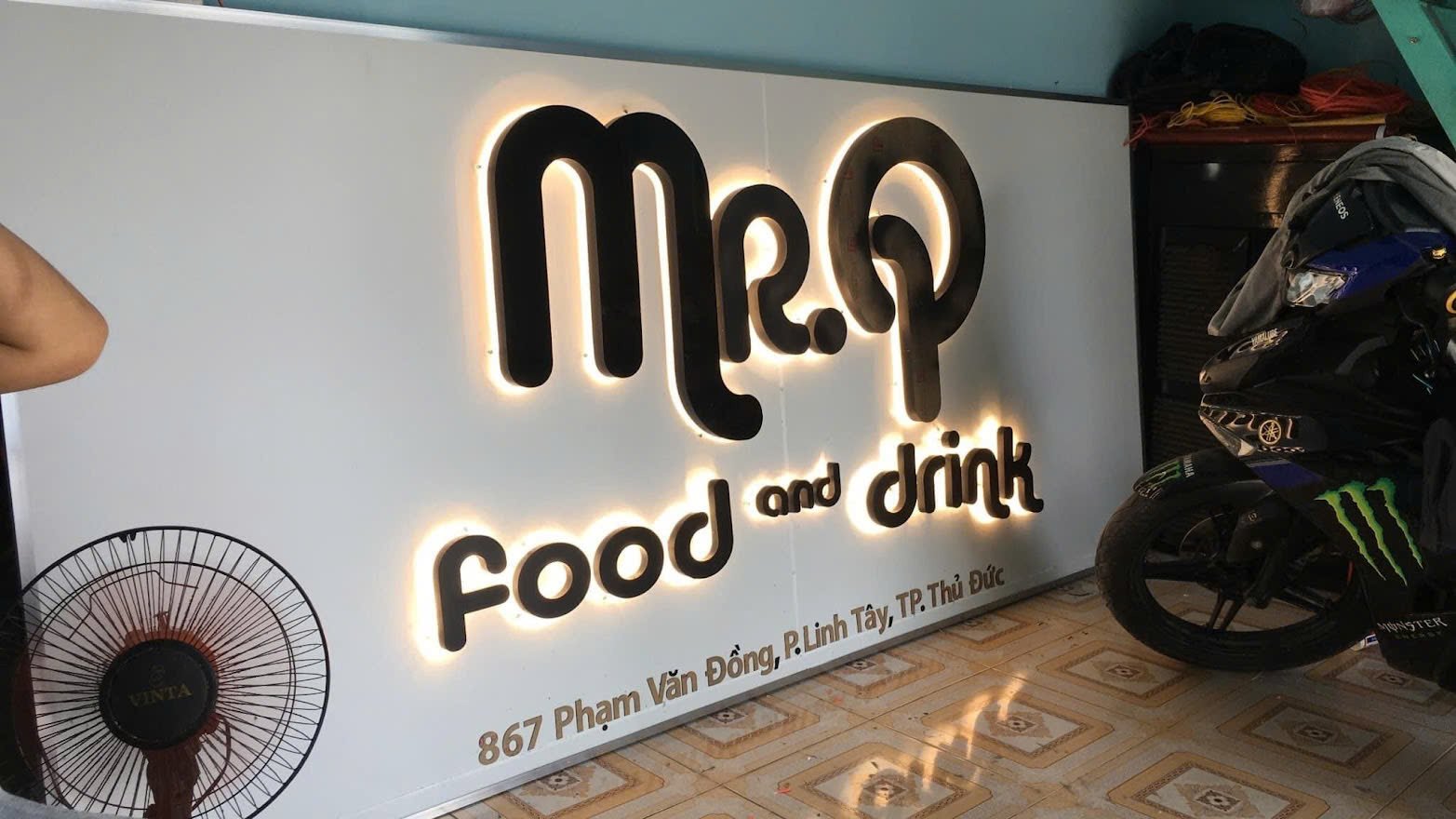 Ánh sáng chiếu từ dưới lên giúp bảng hiệu trông cao ráo, nổi bật và thu hút ánh nhìn hiệu quả mà không cần đến hệ thống chiếu sáng phức tạp.
